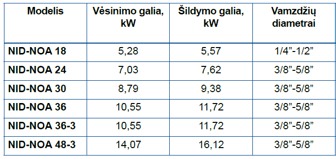 Išorinis blokas komplektuojamas Kondicionieriaus išorinio bloko drenažo ir kompresoriaus pašildymo tenais.